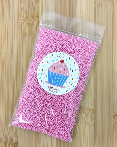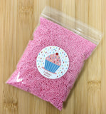 These mini sugar balls or hundreds and thousands in a gorgeous pink colour, they measure approximately 1-2mm each.